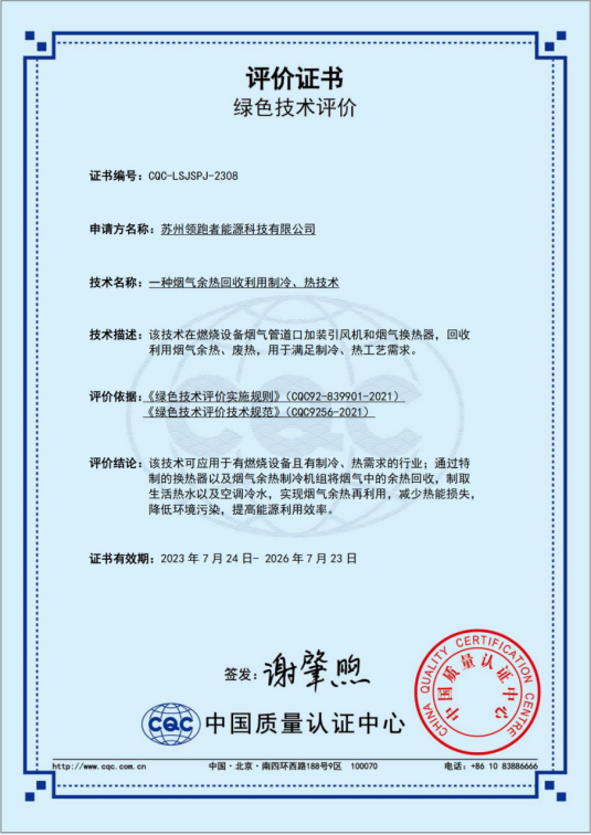 查看更多>2024年4月30日,蘇州領(lǐng)跑者能源科技有限公司的一項(xiàng)余熱回收技術(shù)——“基于煙氣換熱器的余熱回收制冷熱技術(shù)”入選《國(guó)家工業(yè)和信息...